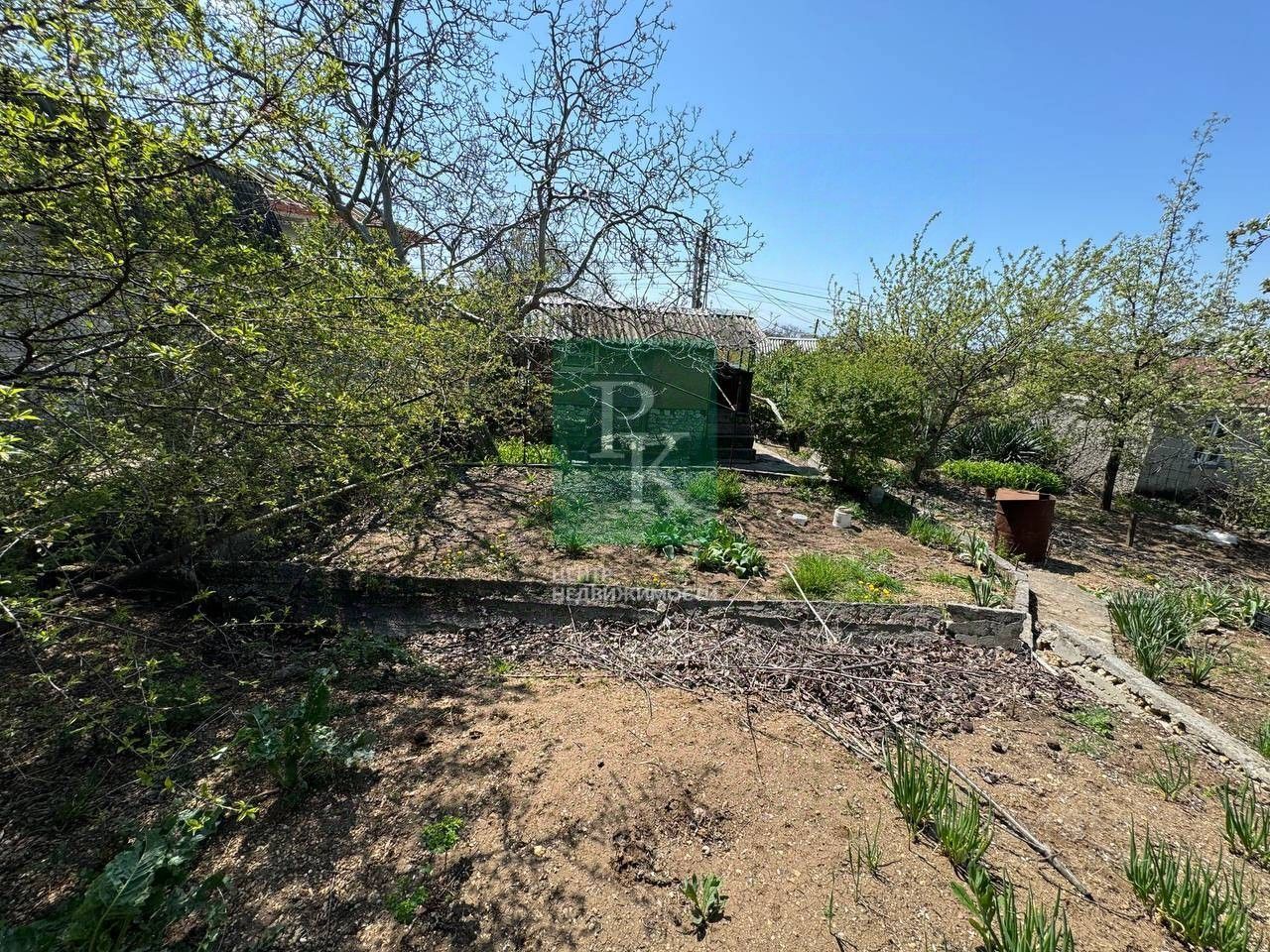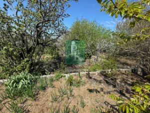 На участке есть небольшой садовый дом (кунг), незарегистрированный; емкость для воды, летний душ, туалет.