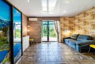 -Просторная гостиная-столовая с теплым дровяным камином для уютных вечеров +Панорамный выход на террасу