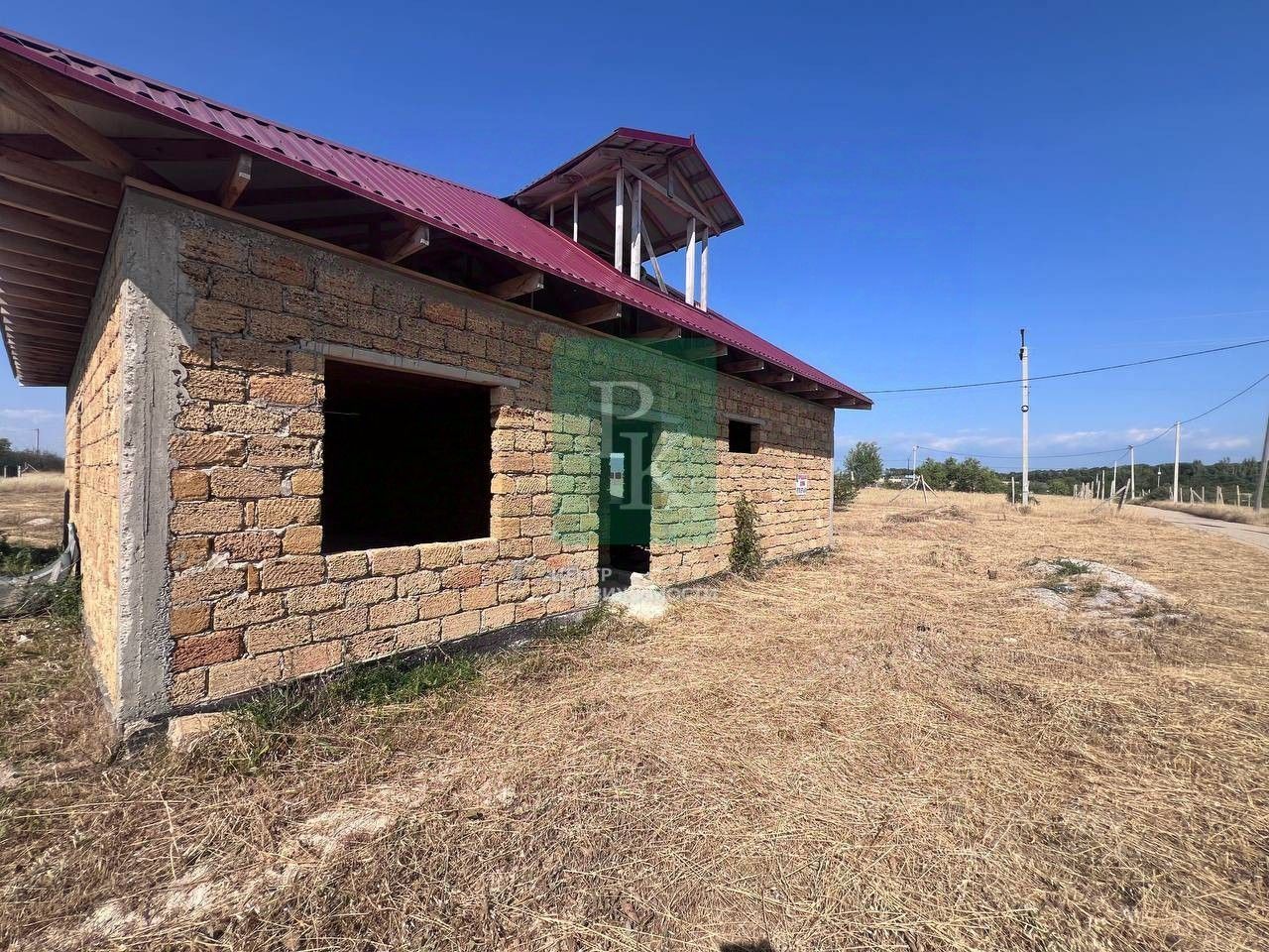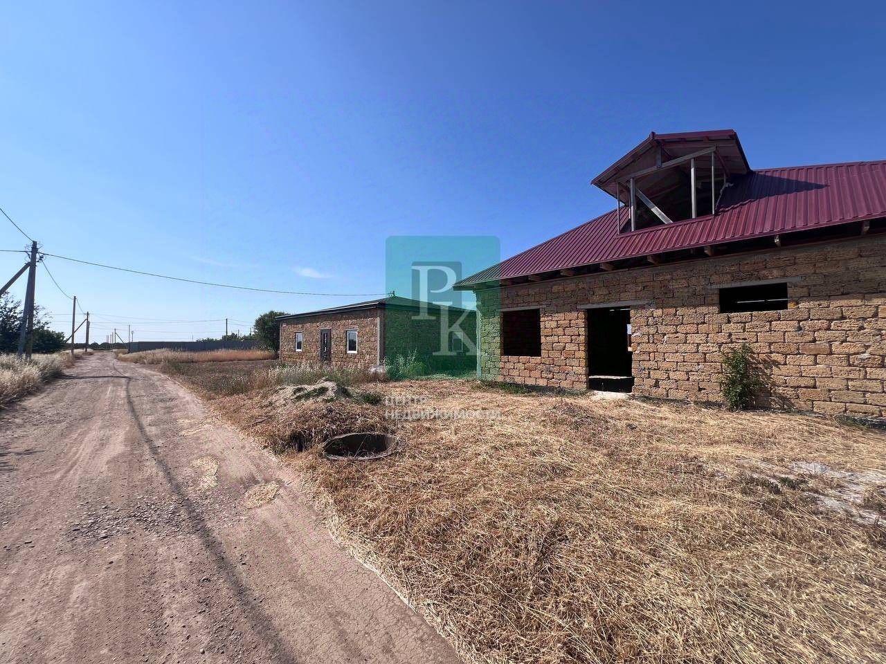 Дом недостроенный, одноэтажный из ракушки. Участок ровный, правильной формы.