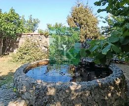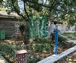 Участок огорожен. На территории растут плодовые и декоративные деревья, есть фонтан.