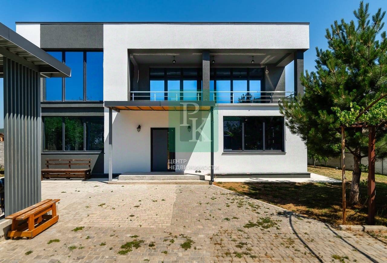 Дом 273 м² на участке 9,8 сотки, двухэтажный. Расположен в г. Севастополь, Балаклавский район, с. Гончарное, ул. Орлиновская. Коммуникации: электричество, вода, газ, канализация.