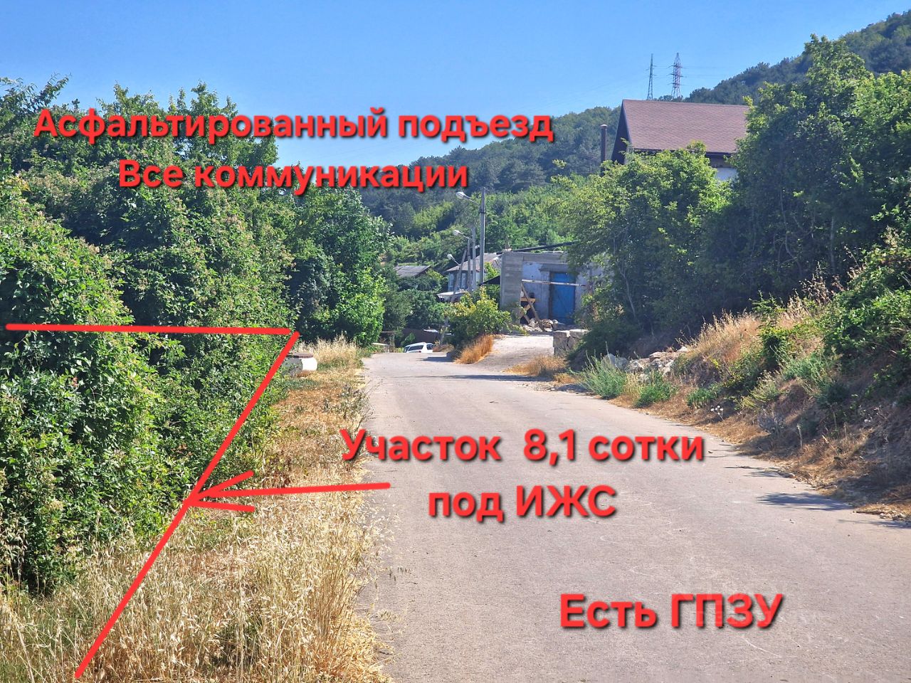 Асфальтированный подъезд по улице вдоль всего фасада участка.