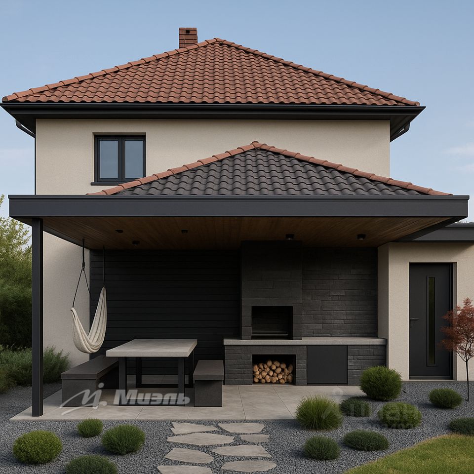 Надежность и Статус: Крыша покрыта премиальной испанской керамической черепицей гарантия долговечности, эстетики и защиты от любой непогоды.