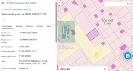 Участок 4 сотки СТ расположен в г. Севастополь, ТСН СНТ "Слип". Имеет незначительный уклон, со сторонами 15*25м. Подъезд по грунтовой укатанной дороге.