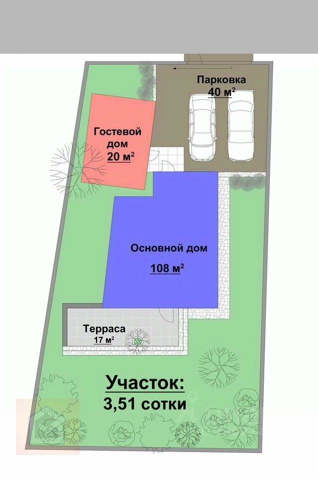 Участок: 3,51 сотки.