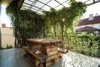 Эксклюзивная отделка фасада натуральным камнем "песчаник". Ухоженный двенадцатилетний сад декоративных растений. Газовое отопление и нагрев воды (конденсационный котел Vаillаnt 50квт) , централизованное водоснабжение и канализация. На территории барбекю зона, беседки, гараж, помещения для обслуживания.