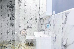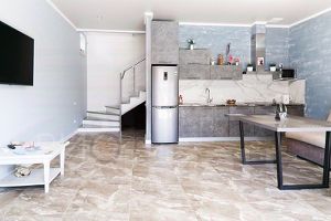 Высота потолков 3,2 м. Материал стен природный камень "ракушка", толщиной 40 см., произведена инсталляция профессиональной системы шумоизоляции.