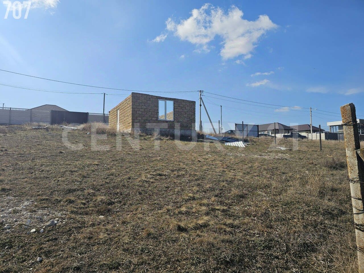 На земельном участке есть капитальное строение на бетонном фундаменте, материал стен - ракушечник. Стороны 9,25м на 5,25м.