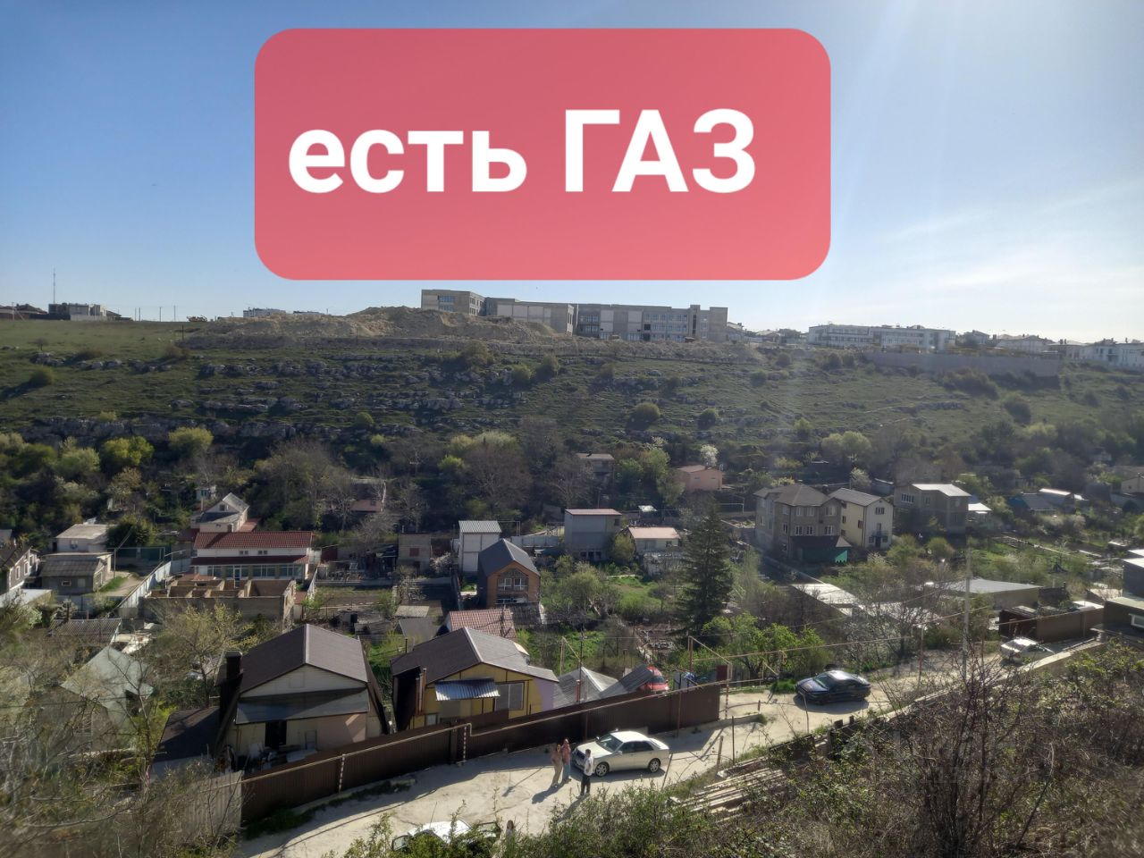 Газ по всему поселку, труба вдоль забора, подключение в любой момент. ГПЗУ получены, пятно для застройки большого дома. На участке есть небольшой дом на верхней террасе, возможна прописка!!! Плодородный чернозем, есть садовые растения.