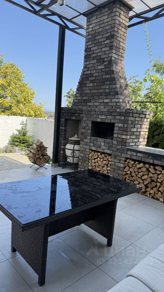 барбекю с двумя дымоходами( отдельный дымоход для тандыра есть) серый кирпич, из которого сделано барбекю очень гармонично вписывается в концепцию.