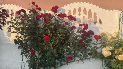 шикарные розы вдоль забора.