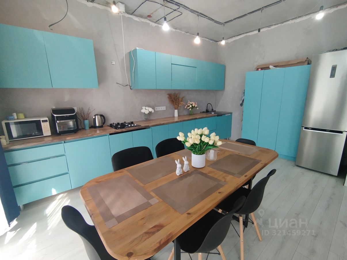 На первом этаже большая кухня-гостиная 41 кв.м. с выходом на террасу с видом на сад, жилая комната 14 кв.м., совмещённый санузел с душевой 7,8 кв.м., гардеробная комната и хоз. помещение. По всему 1 этажу (кроме одной комнаты) - тёплый пол. В гостиной есть кондиционер.