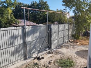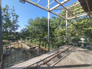 Участок огорожен с 3 сторон, залит фундамент под баню. На участке растут 2 взрослых дерева абрикоса, а также инжир, грецкий орех и гранат.