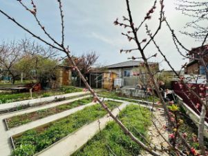 На участке растут плодовые деревья, кустовые розы. Земля плодородна.