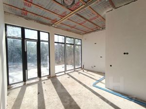 Очень удобная планировка включает в себя три просторные спальные комнаты, санузел и котельную, кухня-гостиная с панорамным остеклением и выходом на террасу. В доме выполнена предчистовая отделка, стены поштукатурены по маякам и ошпаклеваны под обои, выводы под отопление, во всех помещениях теплые полы, холодное и горячее отопление, качественно электрика разведена по дому, подразетники стоят.