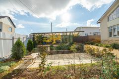 На просторной территории двора имеется площадка под летний бассейн, декоративный фонтан, цветы, хвойные и плодовые деревья, виноград.
