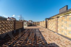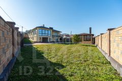 Площадь 11,14 соток имеет статус ИЖС и окружен красивым каменным забором, выполненным из французского камня. На территории есть отдельная беседка с мангалом и печью, а также хозяйственный домик и навес для хранения инвентаря. Подъезд к участку асфальтированный, что обеспечивает удобство в любое время года.
