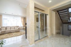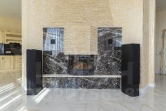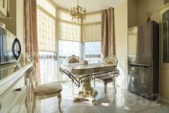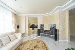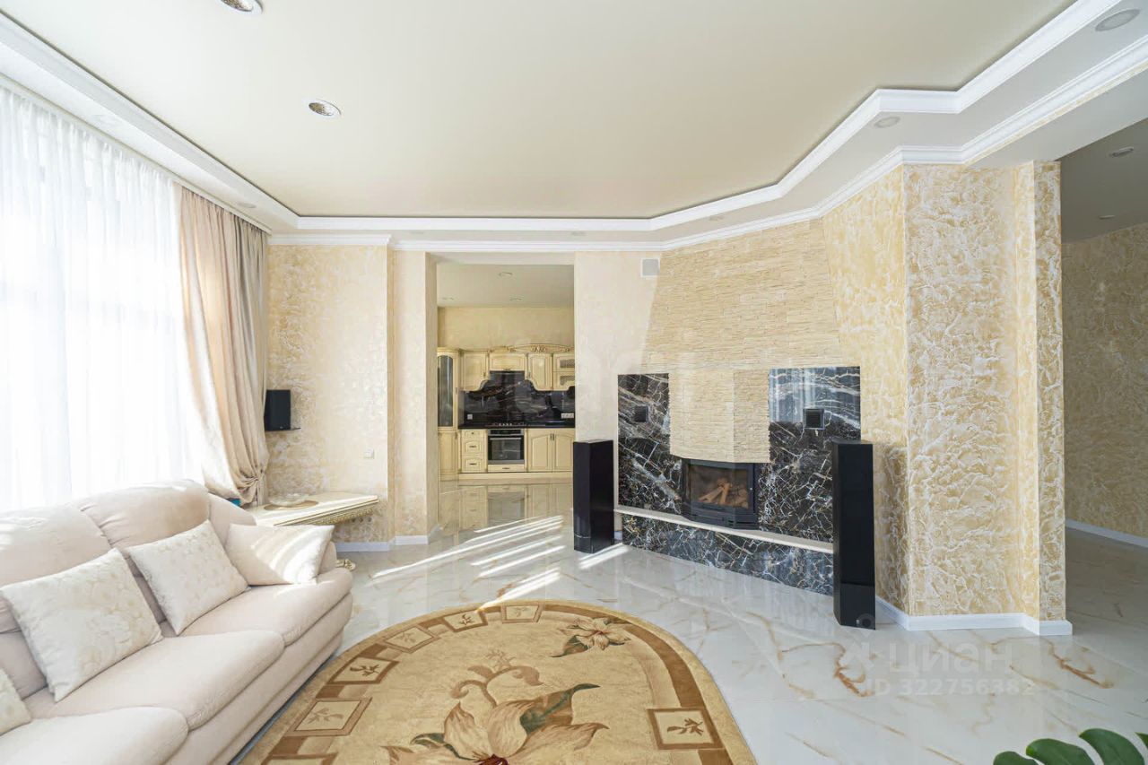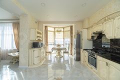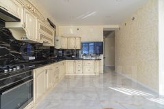 На 1-м этаже кухня 24 кв.м. с эркером, панорамным остеклением и красивым видом на город и море. На стенах первого этажа декоративная штукатурка. Кухня соединена широким проемом с гостиной и холлом. В гостиной домашний кинозал и действуюший дровяной камин (топка Чехия).
