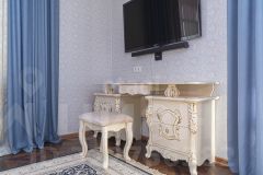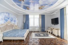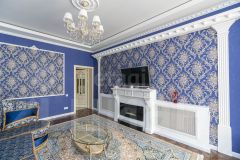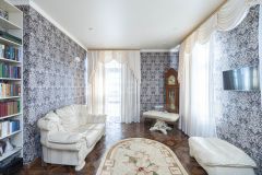 На втором этаже 4 комнаты: гостевая (рядом расположен санузел), гостиная с электрическим камином, библиотека и основная спальная комната со своим отдельным санузлом, площадью 14 кв.м. и встроенным помещением для хранения вещей.