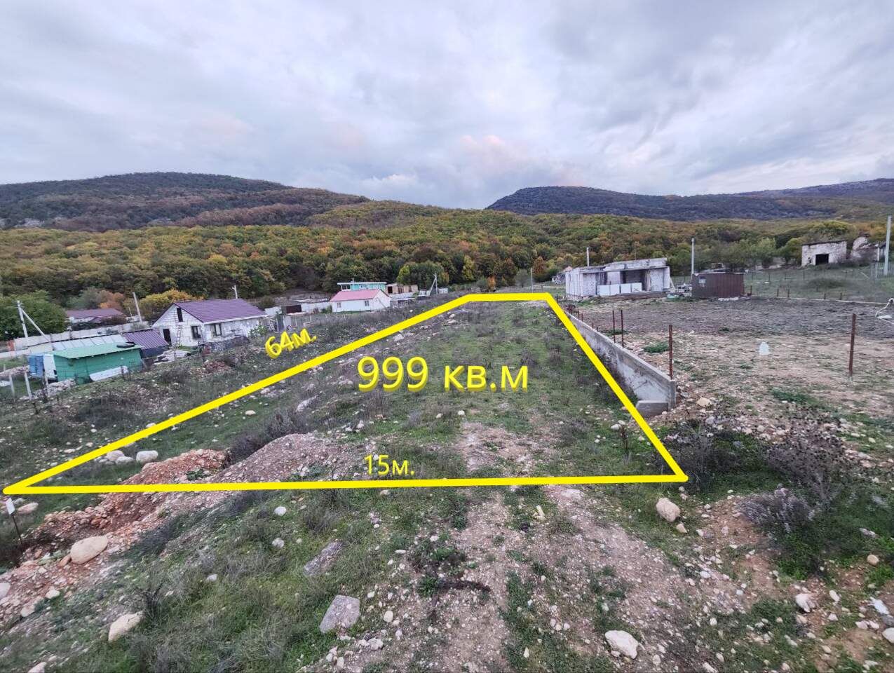 Размеры участка: 15 x 64 м, ровный, прямоугольный.