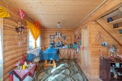 • Материал наружных стен: Сруб из оцилиндрованного бревна с утеплением льняным полотном, обеспечивает отличную теплоизоляцию.