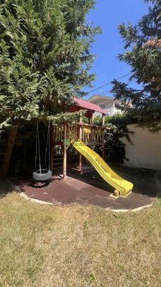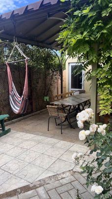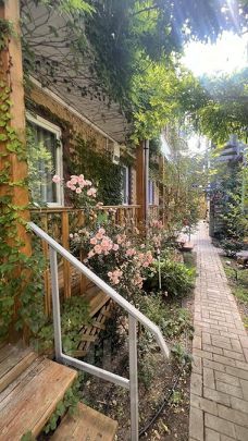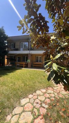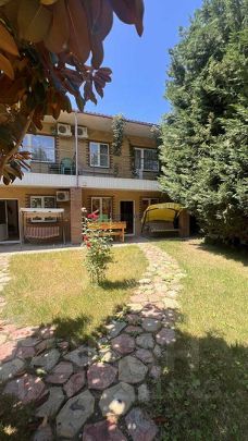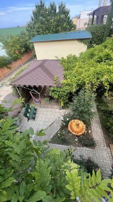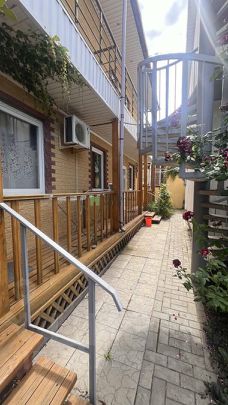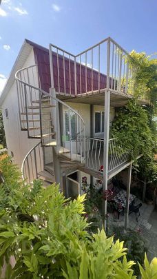 Основной дом 340 м. кв, построен как три двух уровневые квартиры, каждая со своим отдельным входом (по типу таунхауса). На первом этаже расположена просторная кухня- гостиная, совмещенный санузел и спальня, на втором этаже две изолированных спальни, санузел и гардеробная, балкон с видом во внутренний дворик. В кухню - гостиную вход с двух сторон, что позволяет комфортно разграничить пребывание гостей! Перед каждым входом "террасная" зона с качелей и обеденной группой!