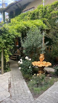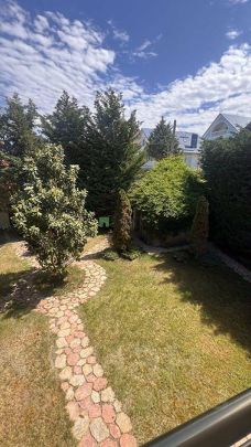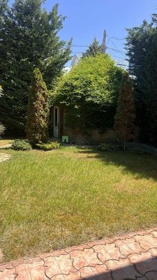 Очень красивый , зеленый, цветущий двор! С туями, розами, глицинией, ровным газоном, детской площадкой! По всему участку установлена система полива.