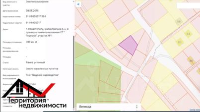 Продам участок площадью 3.96 сотки в СТ "Теремок". Трапециевидная форма позволяет рационально разместить дом и зону отдыха.