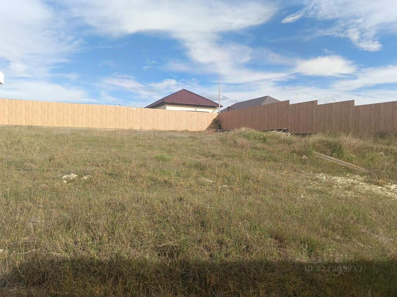 Участок правильной формы, с небольшим уклоном. Пустой. По периметру огорожен забором.