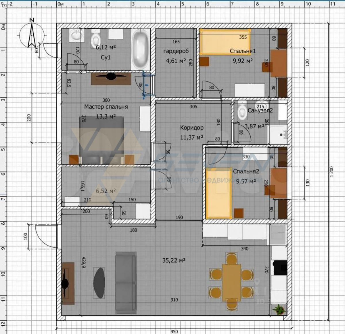 * 3 спальни (в том числе мастерспальня с собственным санузлом и гардеробной);