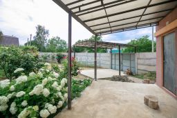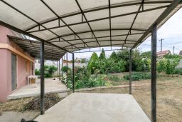 Благоустроенный заезд с навесом, для автомобиля, ворота.