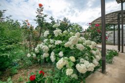 Многообразие цветов роза, пион, гортензии добавит романтики теплым летним вечером.
