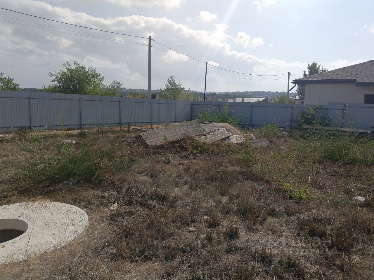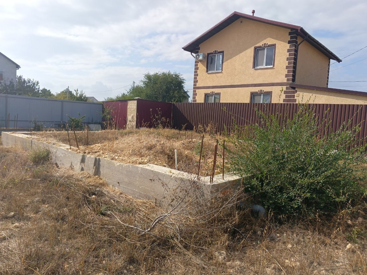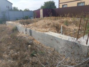 Участок квадратной формы,огорожен забором,есть ворота.Заведён свет 15 кВт. и постоянная вода.Так же на участке есть фундамент 6 на 8.