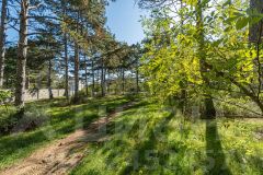 Земельный участок расположен в окружении соснового леса. Участок правильной прямоугольной формы. Коммуникации по границе земельного участка-свет, вода, газ.