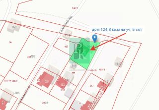 Дом 124,8 м² на участке 5 соток, двухэтажный. Расположен в г. Севастополь, Гагаринский район, СНТ Строитель. Коммуникации: электричество, водоснабжение, отопление, канализация, газоснабжение.