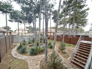 Из кухни-гостиной дополнительный выход на участок с ландшафтным дизайном.