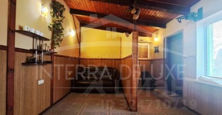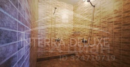 - первый этаж прихожая, сауна с дровяной печкой Наrviа, бассейн 2х3 м, душ, санузел, зона кухни и две зоны отдыха, на полу керамическая плитка;