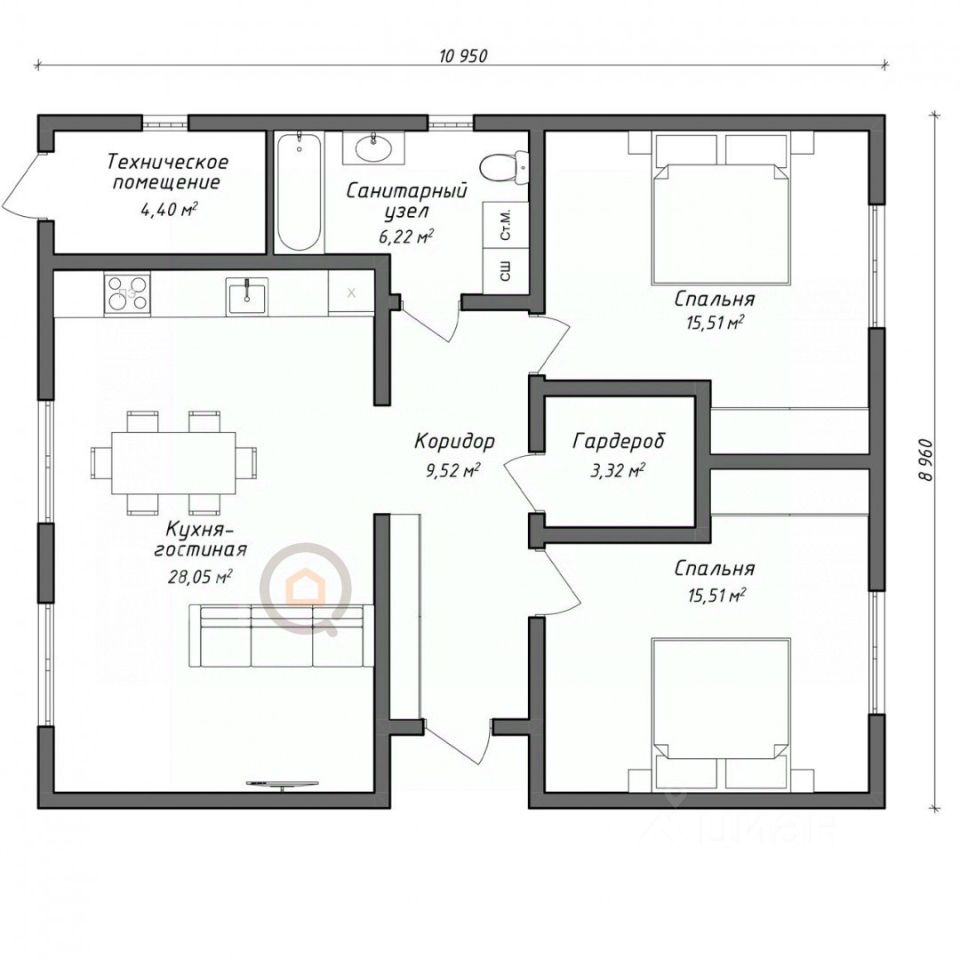 Коридор — 9,52 м2