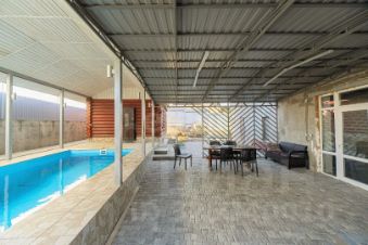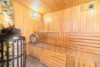 На благоустроенной территории размещены баня 64 м, бассейн 63 м и беседка 64 м. Площадь перед домом вымощена тротуарной плиткой, парковочная зона отсыпана гравием. Объект полностью обеспечен коммуникациями: центральный водопровод с фильтрационной системой, трехфазное электричество 15 кВт, газ. В настоящее время инициирован процесс перевода земли в категорию ИЖС.