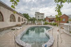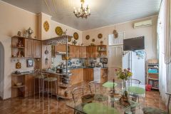 - Дом 700м2: состоит из 7-ми комнат, большая кухня-гостиная с выходом в огромную террасу (зимний сад), и к бассейну (бассейн на 5м3). Дом оборудован лифтом, двумя гаражами, огромной котельной, постирочной комнатой и несколькими комнатами под хозяйственные нужды. Полностью по всему дому сделан качественный ремонт. На каждом этаже отдельные санузлы с ванными комнатами. Все коммуникации городские заведены и подключён в том числе и ГАЗ, также установлен альтернативный твердотопливный котёл для резервного отопления дома.