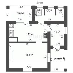1 этаж: прихожая, коридор, комната, кухня, санузел с душевой. Также на этаже котельная.
