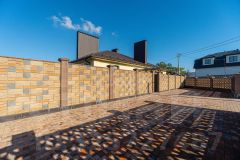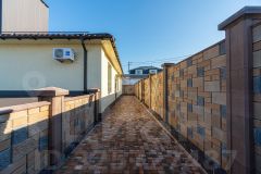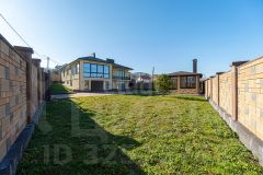 Площадь 11,14 соток имеет статус ИЖС и окружен красивым каменным забором, выполненным из французского камня. На территории есть отдельная беседка с мангалом и печью, а также хозяйственный домик и навес для хранения инвентаря. Подъезд к участку асфальтированный, что обеспечивает удобство в любое время года.