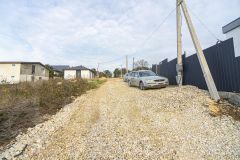 Удобное расположение участка позволяет быстро добраться до города — дорога на автомобиле занимает не более 3 минут, а в 500 метрах находится остановка общественного транспорта.