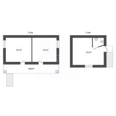 Дом 1 (жилой) 55.1 кв.м. Основной дом включает три изолированные комнаты, кухню и санузел. комнат.