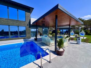 - подогреваемый бассейн с подсветкой 8 метров в длину, шезлонги, гидромассажер.