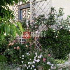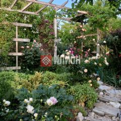 Взрослый сад с деревьями и цветами)и при всем этом есть достаточносвободного места еще и для строительсва такого же дома))) или газона, большогобасейна, огорода или других, ваших задумок)) все фото из сада актуальны.
