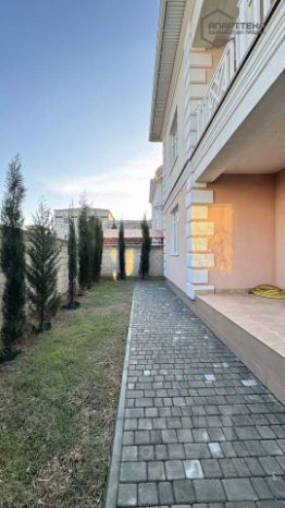 Участок: ровный, правильной формы, огражден по периметру каменным забором с автоматическими воротами. Выполнено благоустройство с озеленением по периметру и место под парковку автомобиля(ей).