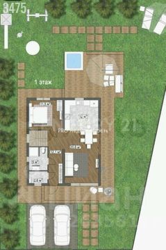 • 1 этаж : кухня гостиная, кабинет, санузел и бойлерная