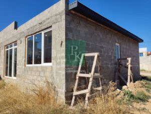 Надо доделать крышу, крыша односкатная. Три комнаты 20 м², 12 м² и 12 м² , ванная комната, небольшая кухня, широкий коридор, санузел. Дом построен из шлакоблока.