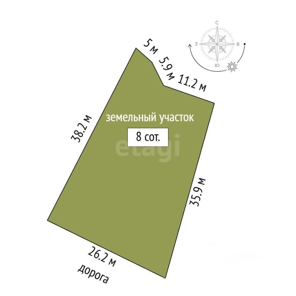 Земля имеет категорию, разрешающую строительство и обслуживание жилого дома. Локация предлагает баланс уединенности и доступности: до центра Севастополя около 13 км, при этом район отличается спокойной атмосферой и открывается живописный вид.